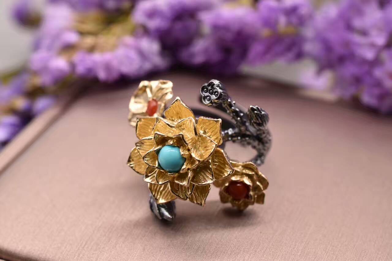 新品【金莲戒指】近日知道各位上仙都害了三生三世的毒,中了夜华君的蛊,为缓解天下的相思相念之痛,我们特请昆仑虚祭出两件神器,欲助各位上仙早日渡劫成功,飞升上神,幸福美满。天地金莲戒,聚昆仑虚后莲花池,夜华万年金莲之精魄,万年供养而成材质:银,铜,南红宝石,绿松石玉神属性:聚天地灵气,取世间姻缘,化白浅会夜华打开方式:佩戴,转动金莲价格实惠,性价比高,我们的宗旨是大众消费买精品物件,做工比肩国际大牌。